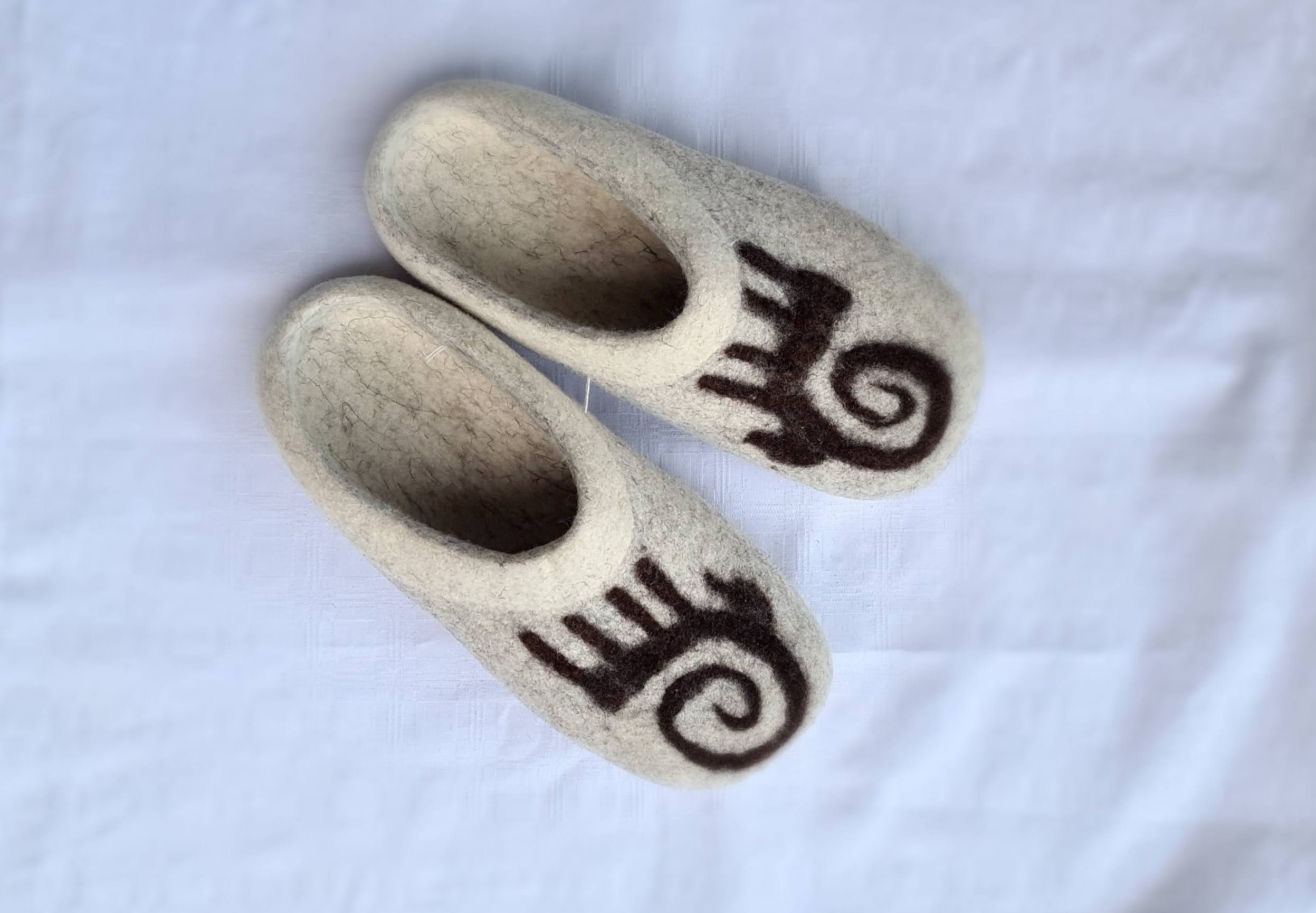 Veröffentlicht 8. Dezember 2025 am 2494 × 1730 in Handgemachte Filzpantoffeln aus Kirgistan | Modell Karakol.